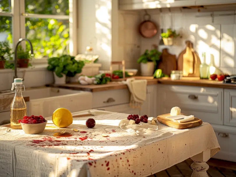 Pour éviter les taches de vin rouge lors de vos repas, envisagez de protéger vos nappes et tapis avec un traitement anti-tache. Ces produits créent une barrière imperméable qui facilite le nettoyage en cas de déversement.